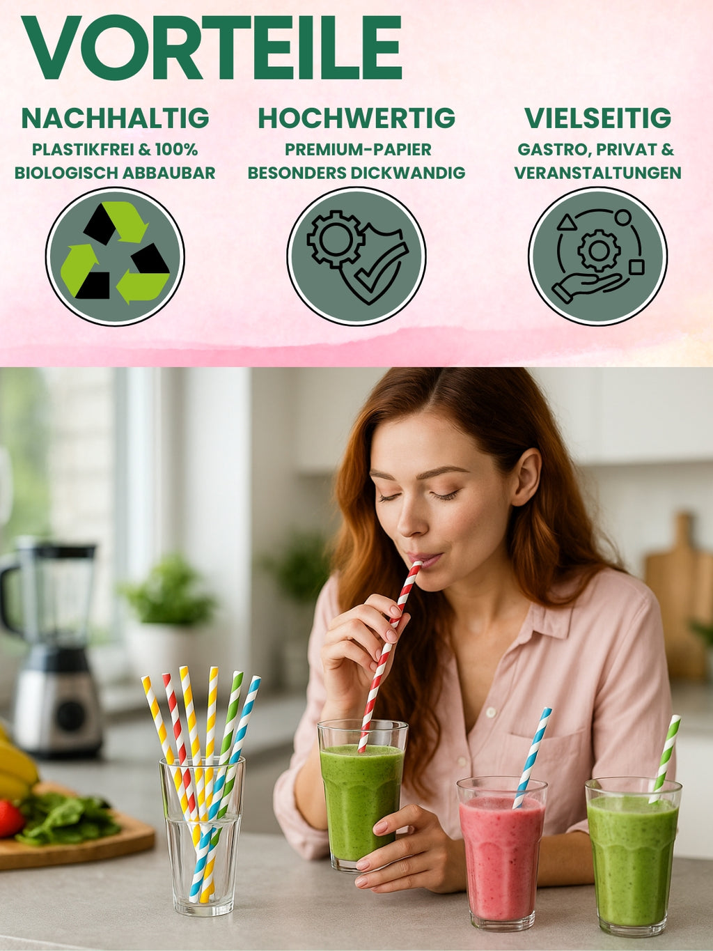 - 💪 STABIL UND LANGLEBIGER EINSATZ - Dicke Strohhalme bleiben 2 - 3 mal länger Formstabil! - Kein Aufweichen, kein Auseinanderfallen: Das stabile, dickwandige Papier sorgt für zuverlässige Qualität – Ideal für Cocktails, Smoothies, Limos und alles, was sonst noch Spaß bringt!