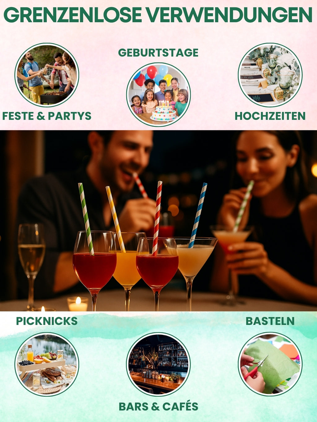- ✨ DEKORATIV, VIELSEITIG & CHARMANT - Nicht nur beim Trinken ein echter Hingucker! - Auch als Deko & kreative Bastelideen beim Kindergeburtstag! - Unsere Halme bringen Farbe, Freude und Stil in jedes Event und jedes Zuhause!